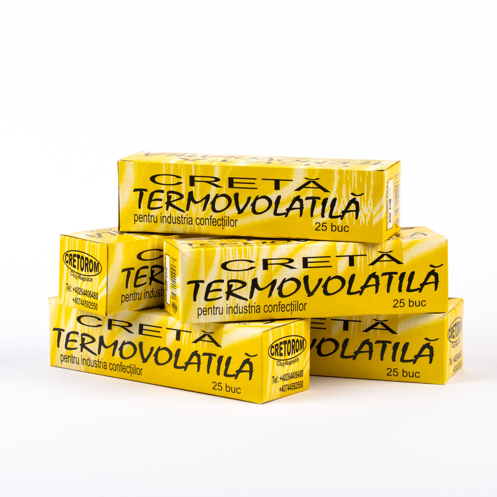 Cretă de croitorie termovolatilă pentru trasarea marcajelor pe tesaturile ce urmează să intre în procesul de producție. Dispare la călcat sau sub efectul temperaturii ambientale in 48-72 h (temperatura de peste 35 C)